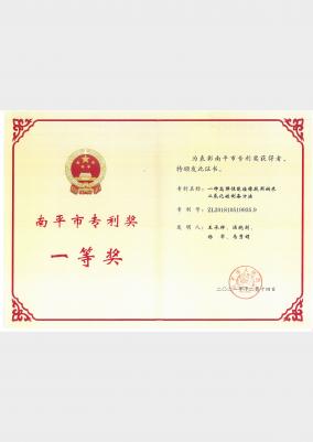 Nanping City Patent First Prize Certificate